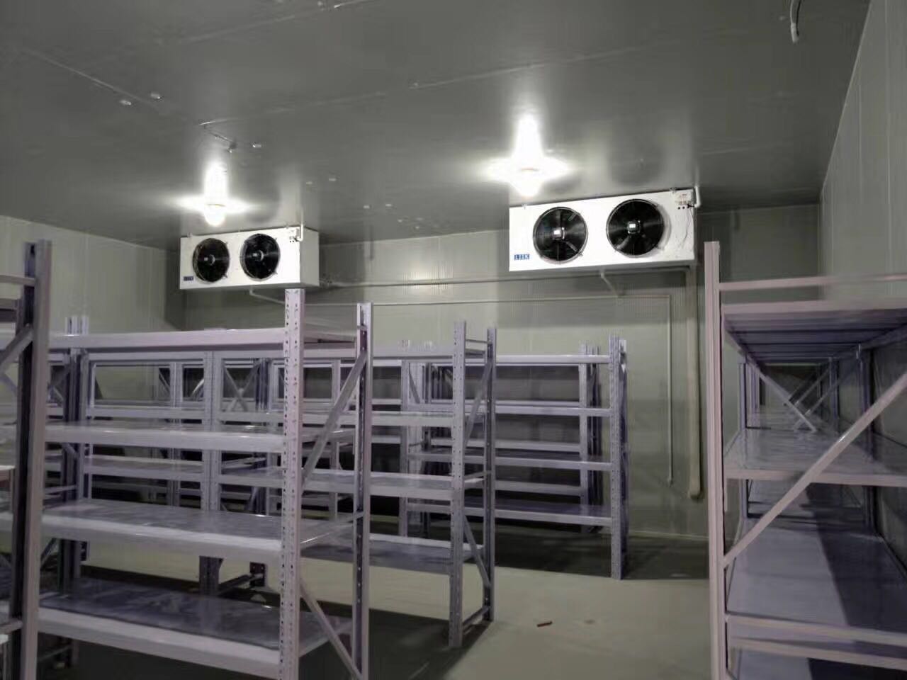 冷库制冷设备:主要是冷库压缩机与蒸发器的选用。一般情况下制冷机组选用进口全封闭压缩机具有能效比高,制冷能力强,噪音低,安全可靠等特点。冷凝散热器配用高效风冷凝器,选用外转子低噪音电机,能有效散发热量,在极端高温环境下使高压压力维持在正常值,使制冷机组发挥高效制冷效果,节能环保冷库内蒸发器采用高效DL吊顶冷风机,噪音低,制冷量大,自动化霜。